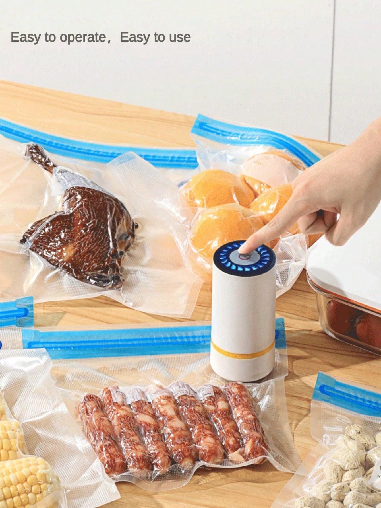 1 Pc Portable Handheld Electric Vacuum Machine, Food Vacuum Storage Bag, Vacuum Sealed Zipper (Reusable Vacuum Bag) 3-In-1 L and M