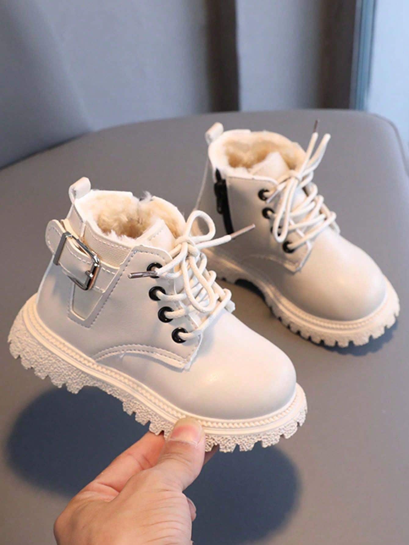 1pair Children Thermal Lined Boots, New Autumn/Winter Fashion, Anti-Slip Rubber Sole, Warm Fur Short Boots For Boys & Girls