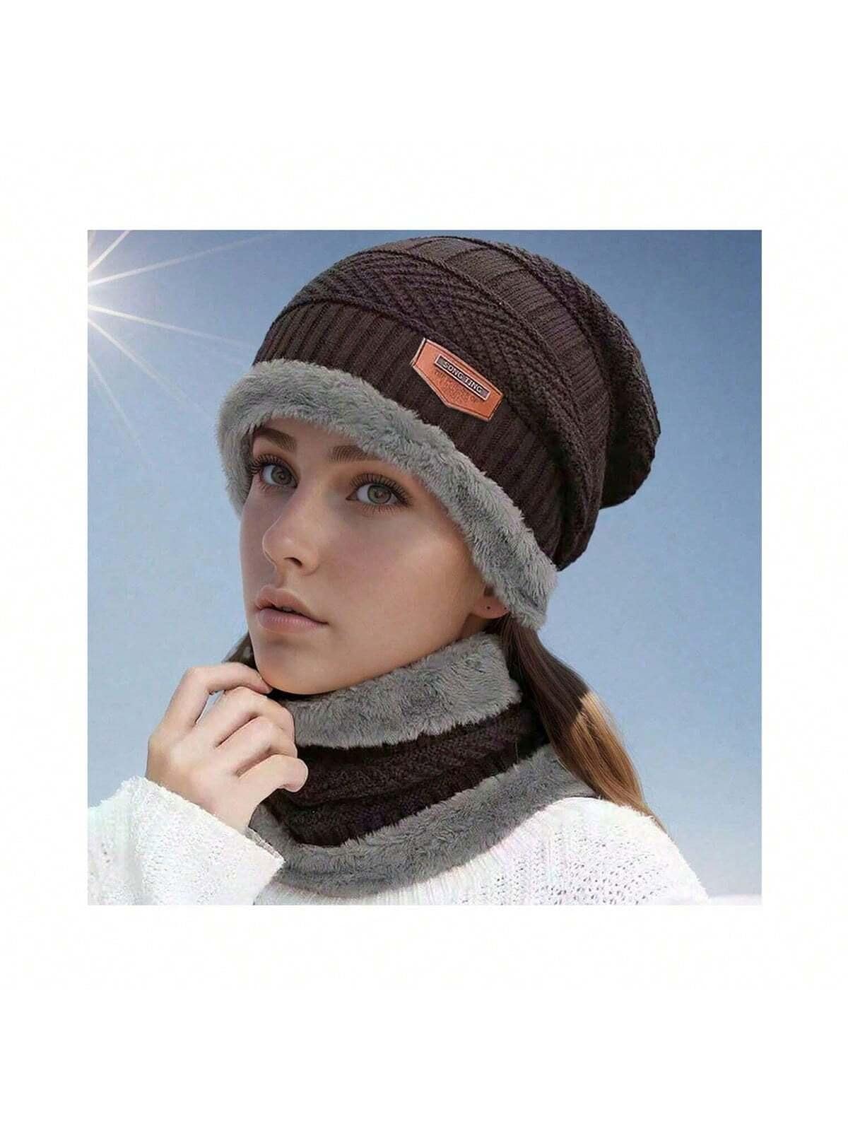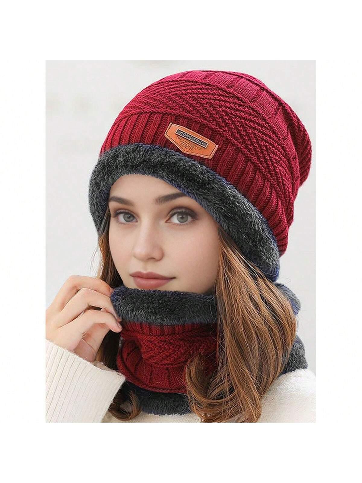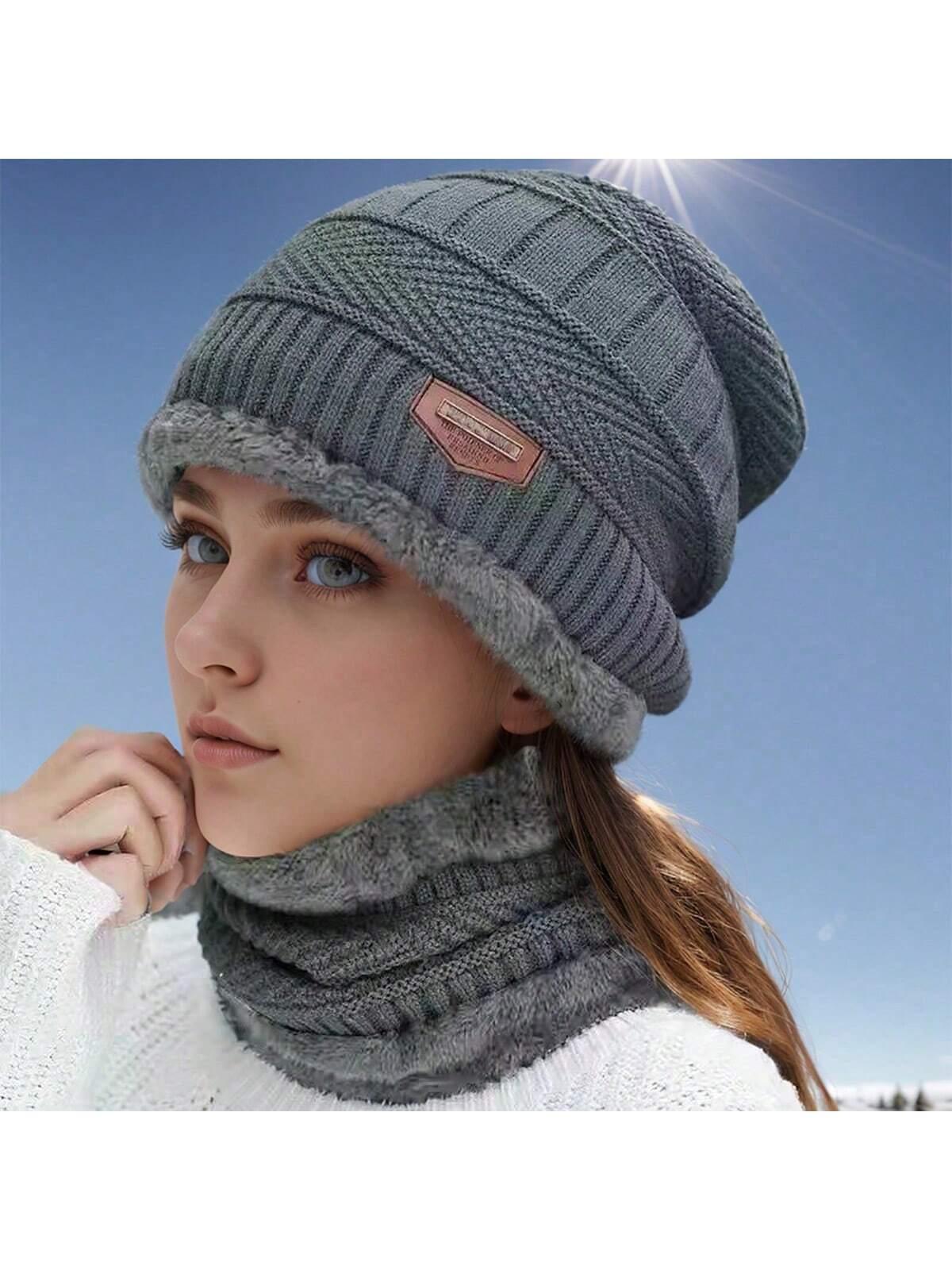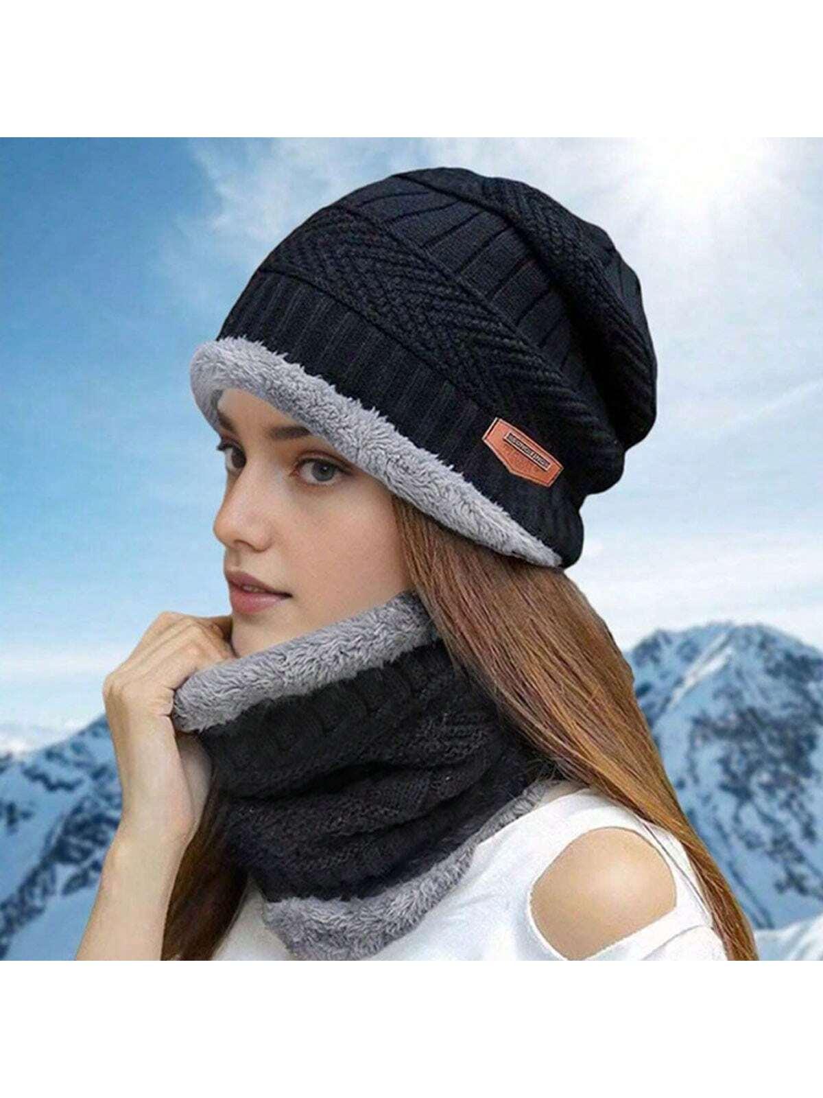2-piece women's solid color winter hat and scarf set, featuring a soft, comfortable, windproof design ideal for cycling. The breathable,