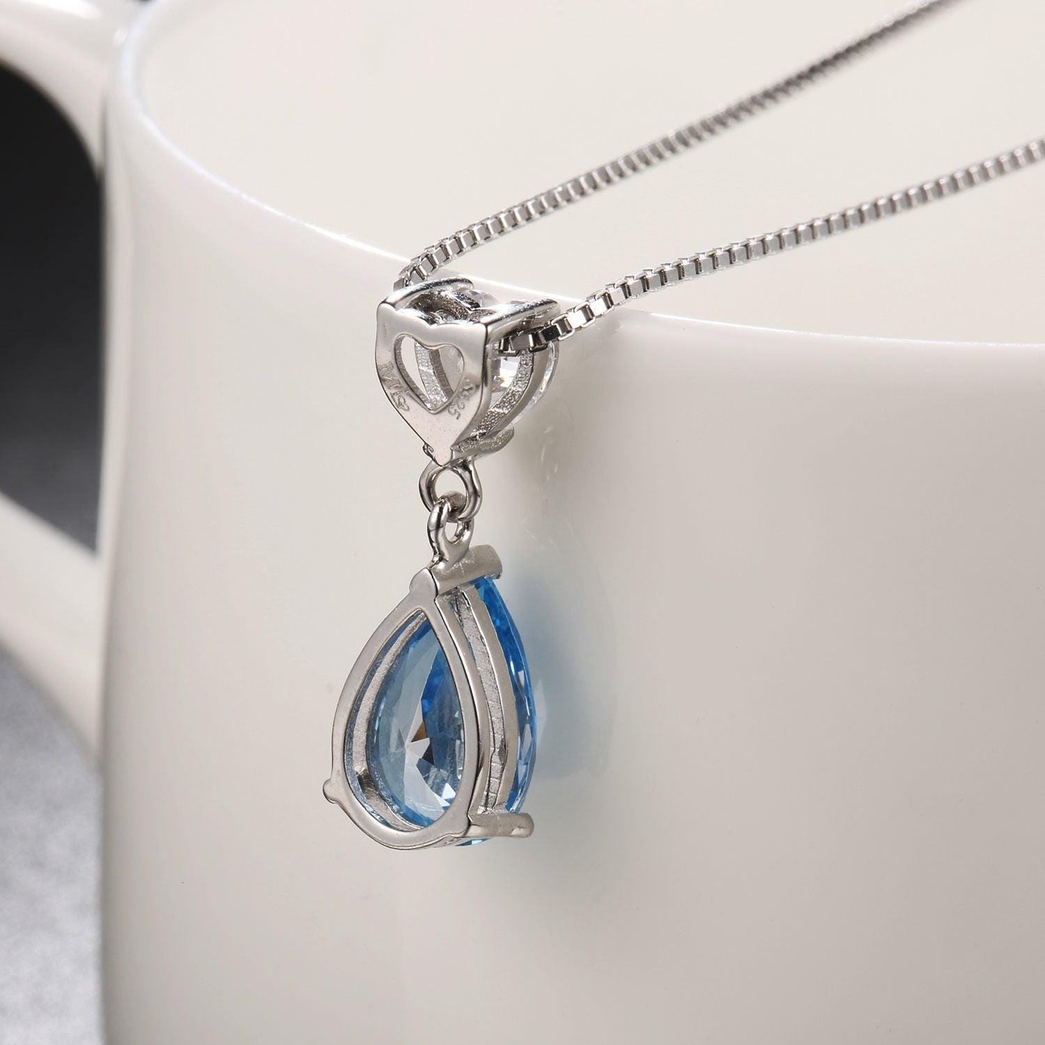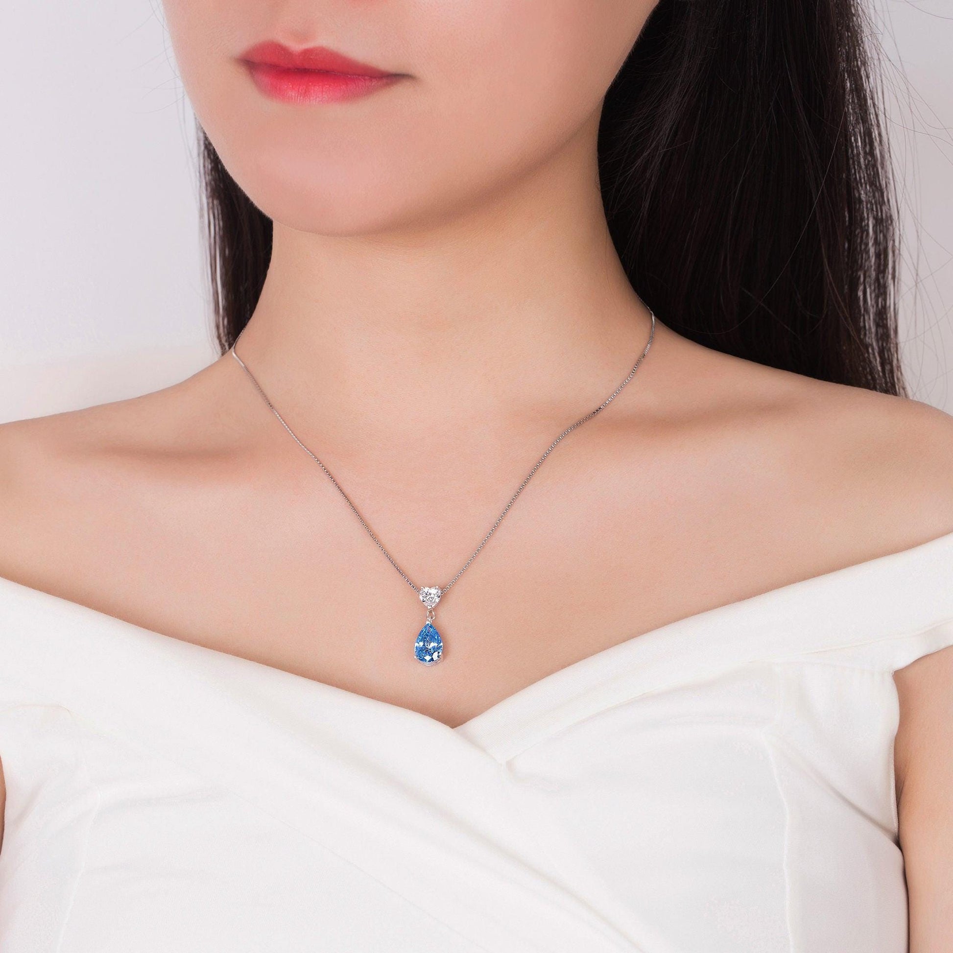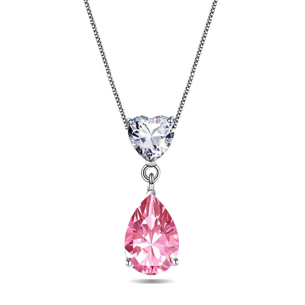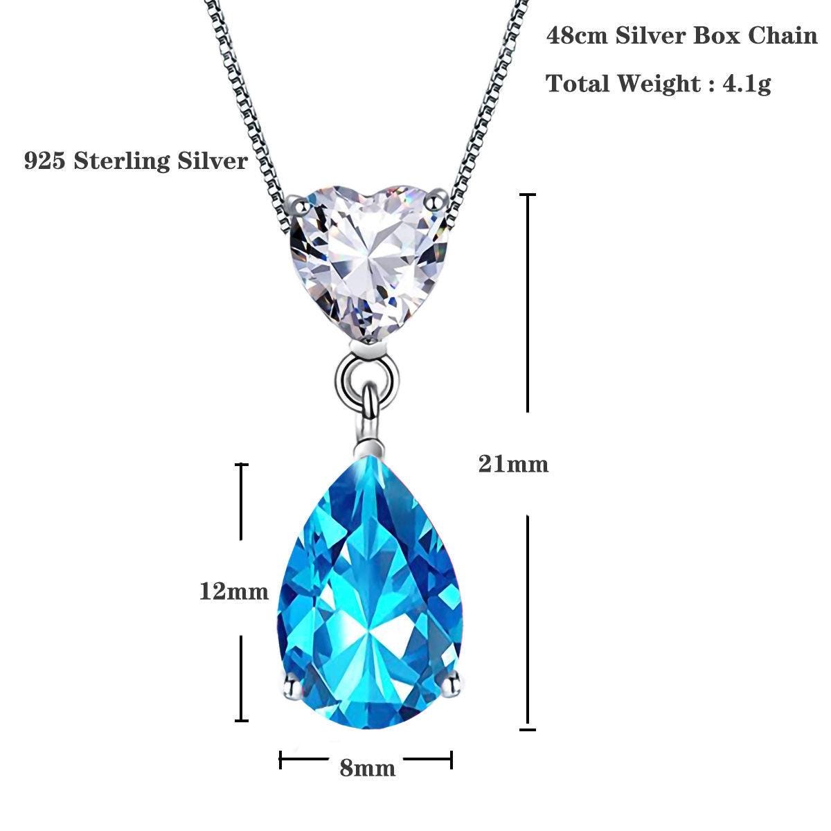 Amazing 925 Sterling Silver 3 Prong Pear Shape Cubic Zirconia Heart Pendant Necklace for Women,18" Silver Chain with Gift Box