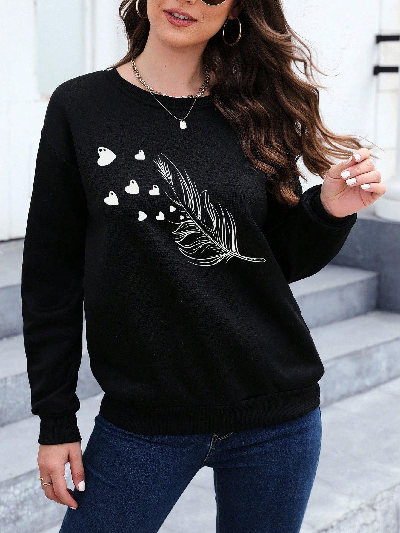 Essnce Women's Tree Leaf & Heart Patterned Casual Pullover Long Sleeve Sweatshirt