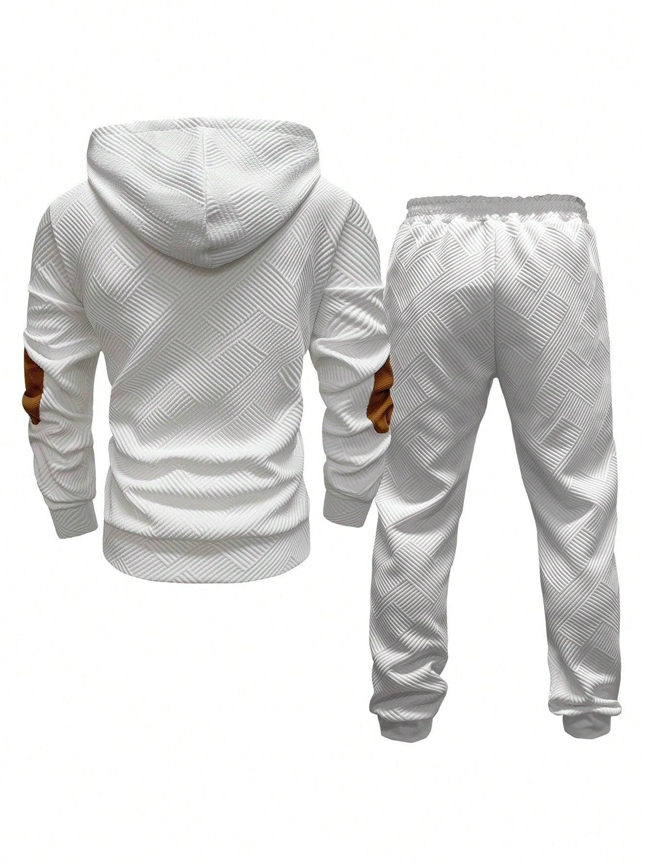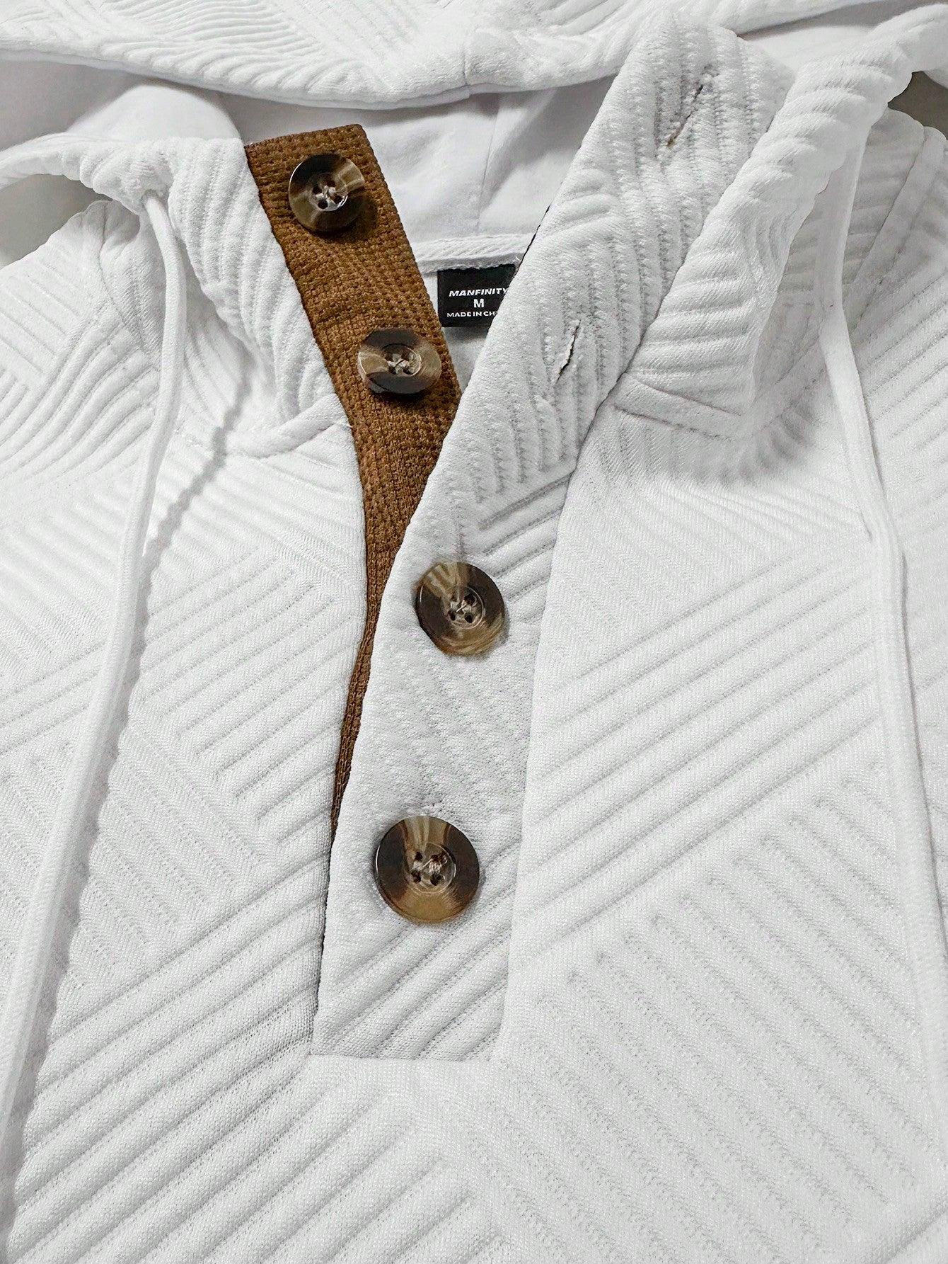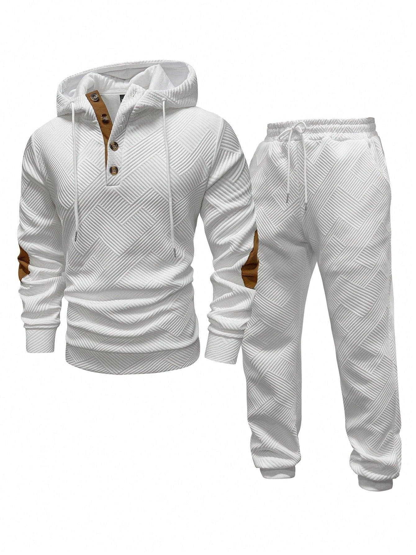 Men's Solid Color Patchwork Long Sleeve Front Button Hoodie And Pants Outfit