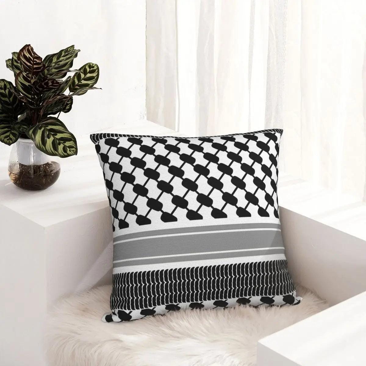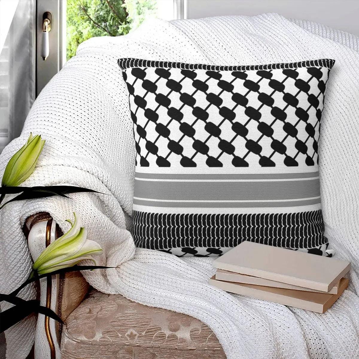 Palestinian Map Black and White Keffiyeh Pillow Cover Palestine Flag Soft Pillowcase Cushion