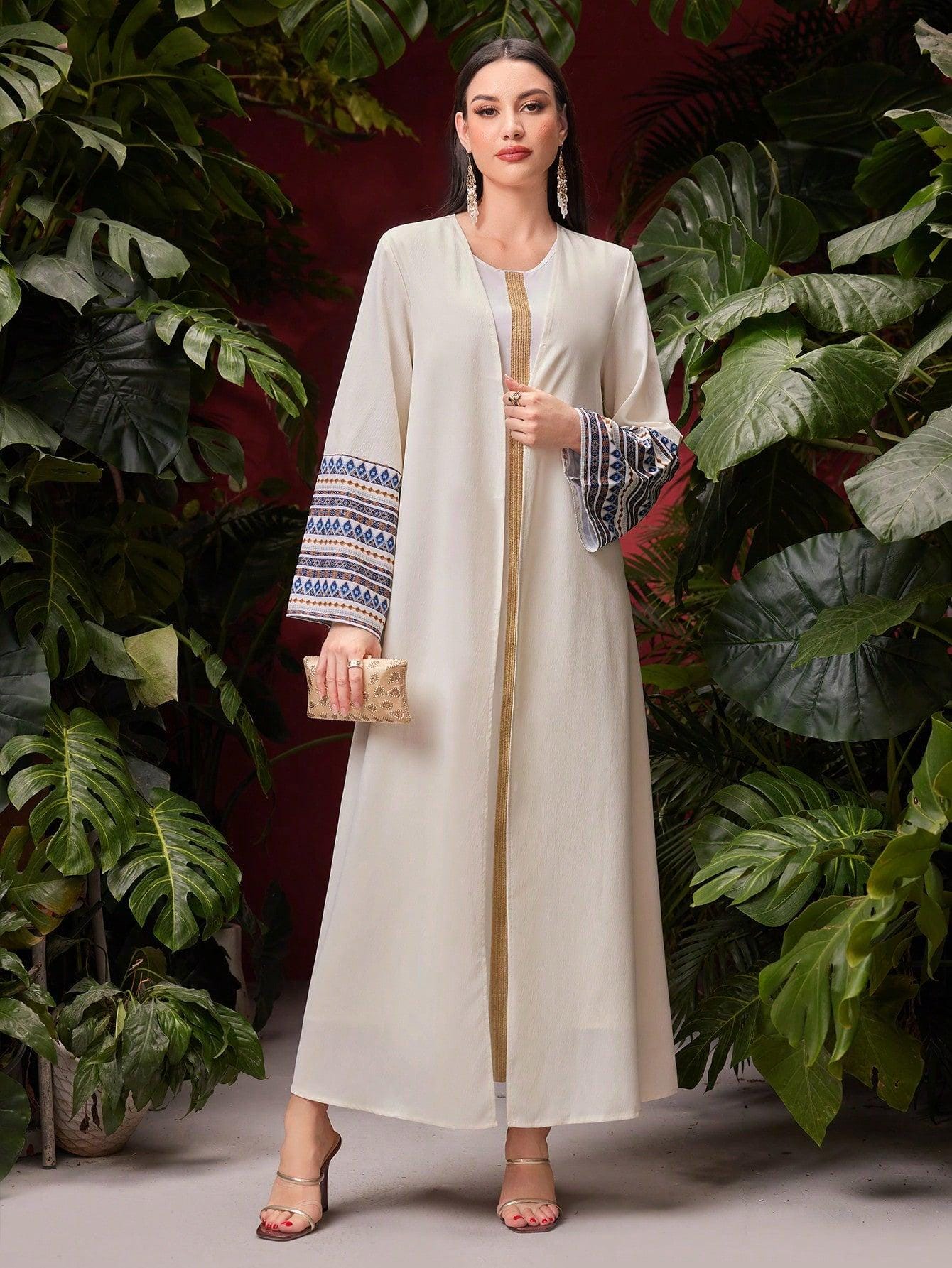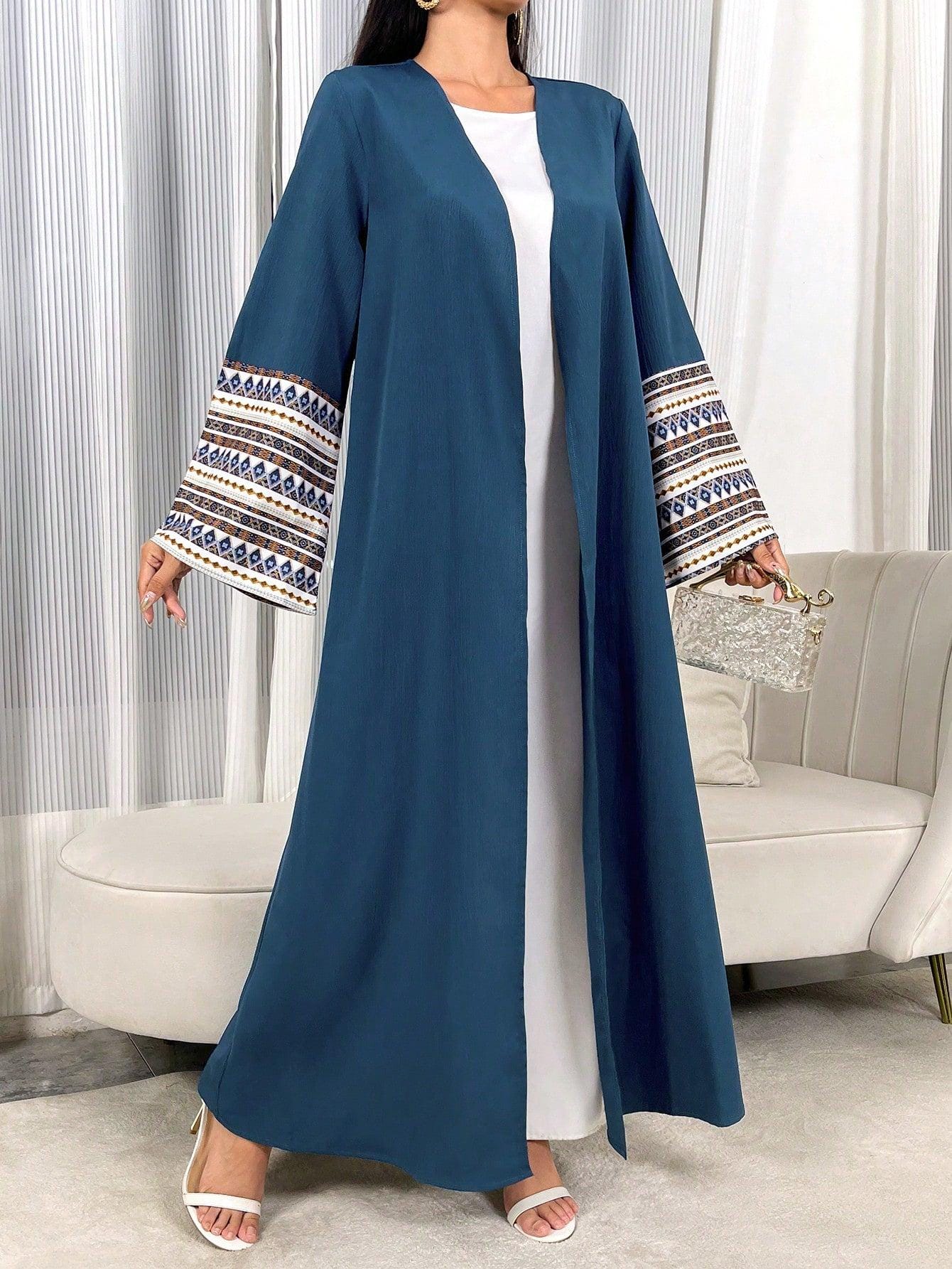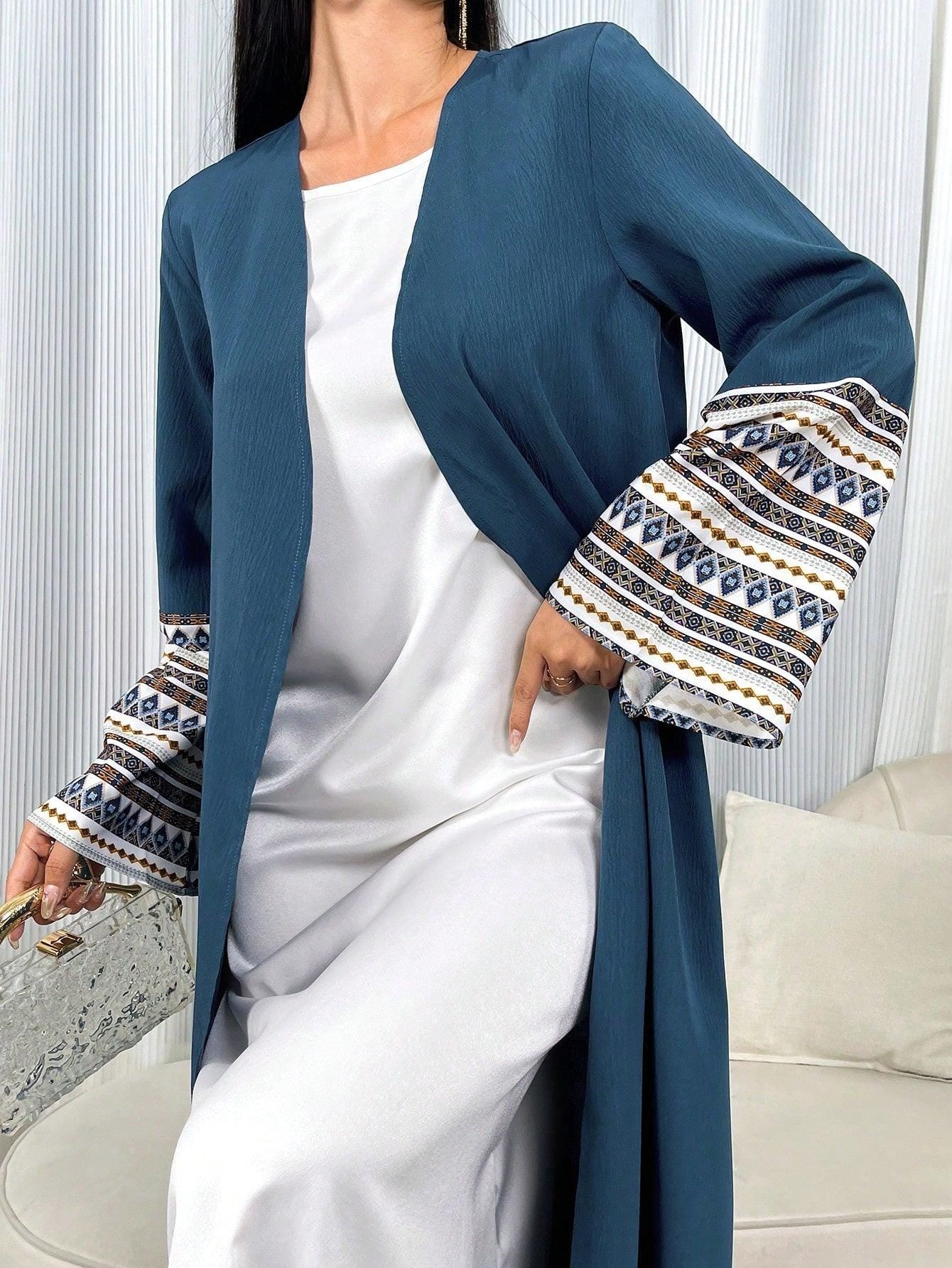 Women's Spring Summer Casual Printed Patchwork Flared Sleeve Long Arabian Abaya Modest Dress