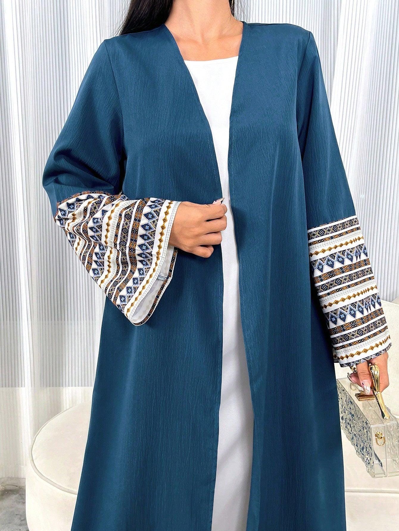 Type : AbayaDetails : Belted, Contrast Sequin, TapeStyle : Casual, ModestSleeve Type : Regular SleevePattern Type : TribalSleeve Length : Long SleeveColor : Teal BlueLength : LongFit Type : LooseFabric : Slight StretchMaterial : Woven FabricComposition : 100% PolyesterCare Instructions : Machine wash, do not dry cleanSheer : No